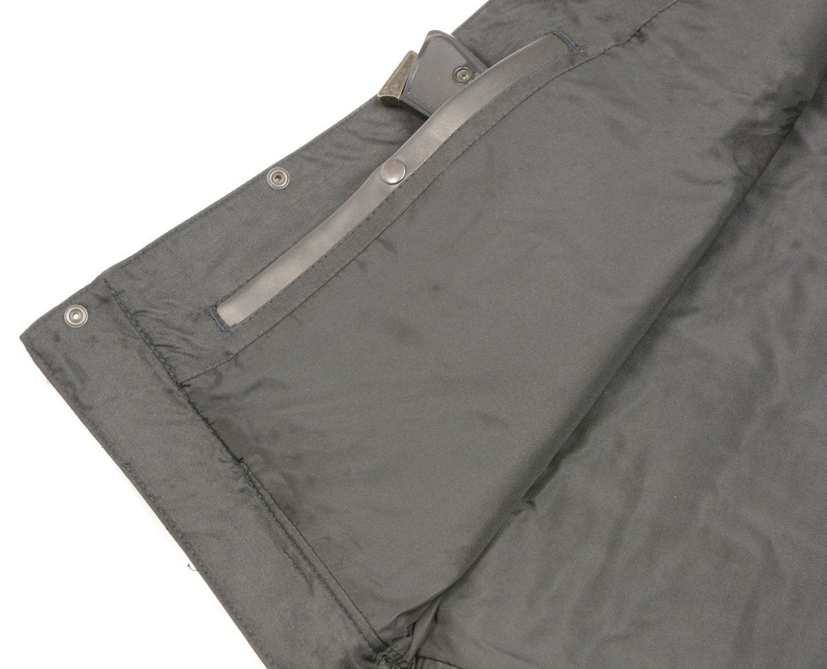 - Dual Front Closure with Concealed Snap and Zipper Closure (Zipper Concealed Behind The Flap)