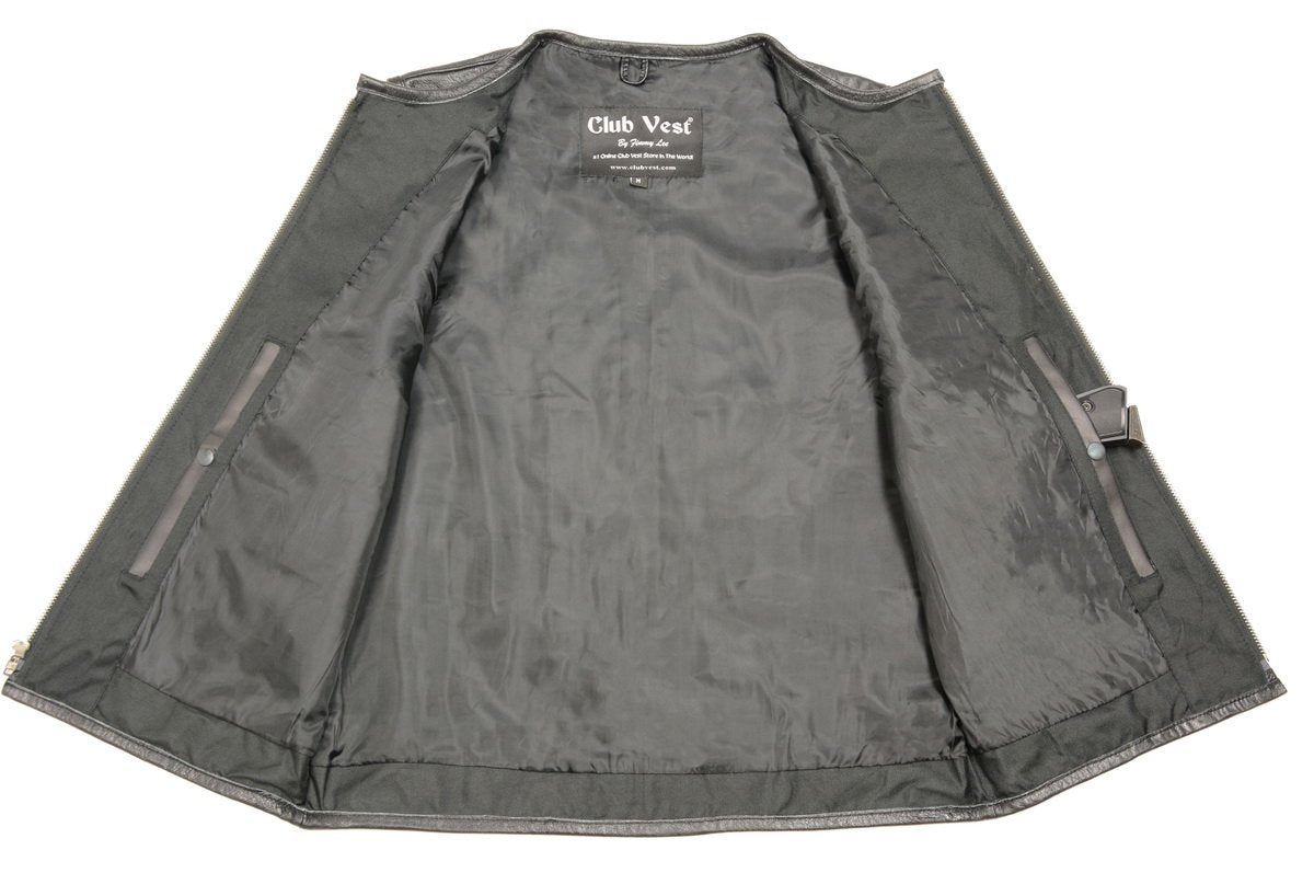 Club Vest CVM3741 Men’s Black Zipper Front Side Lace Leather Vest with Seamless Design
