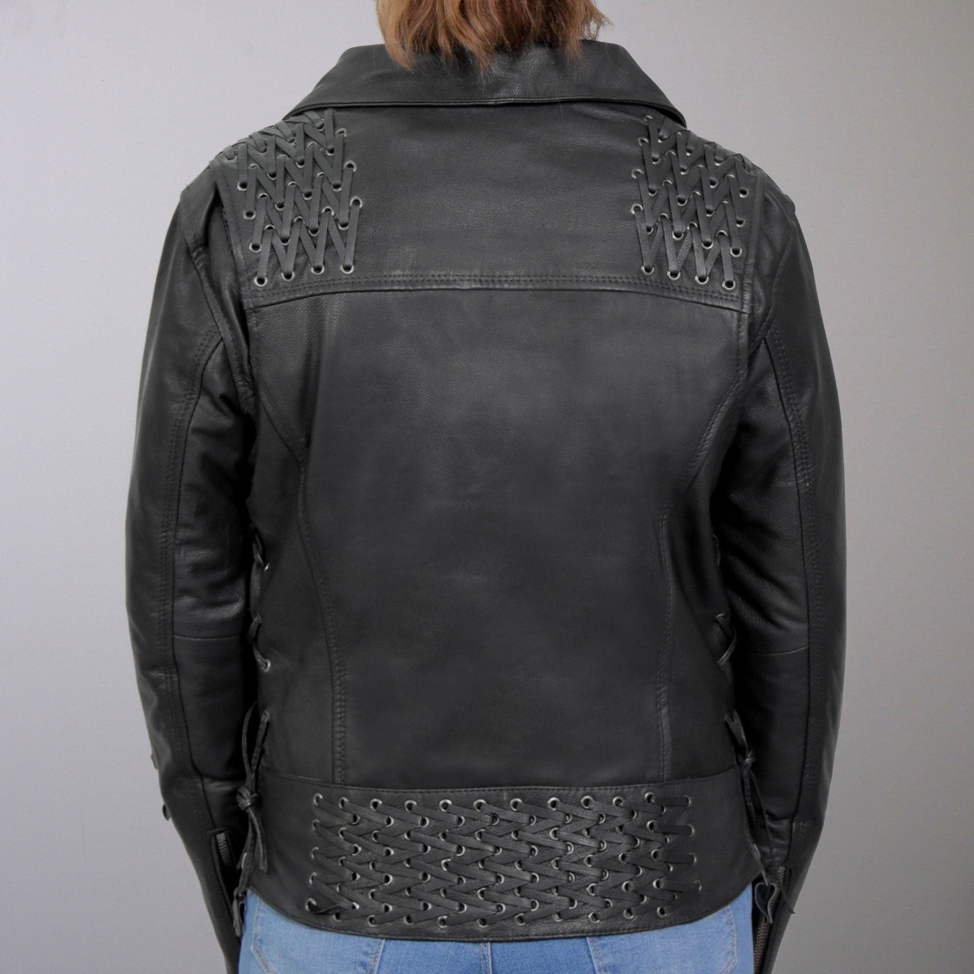 Hot Leathers JKL1027 Ladies Black Lace Detail Carry Conceal Leather Motorcycle Biker Jacket