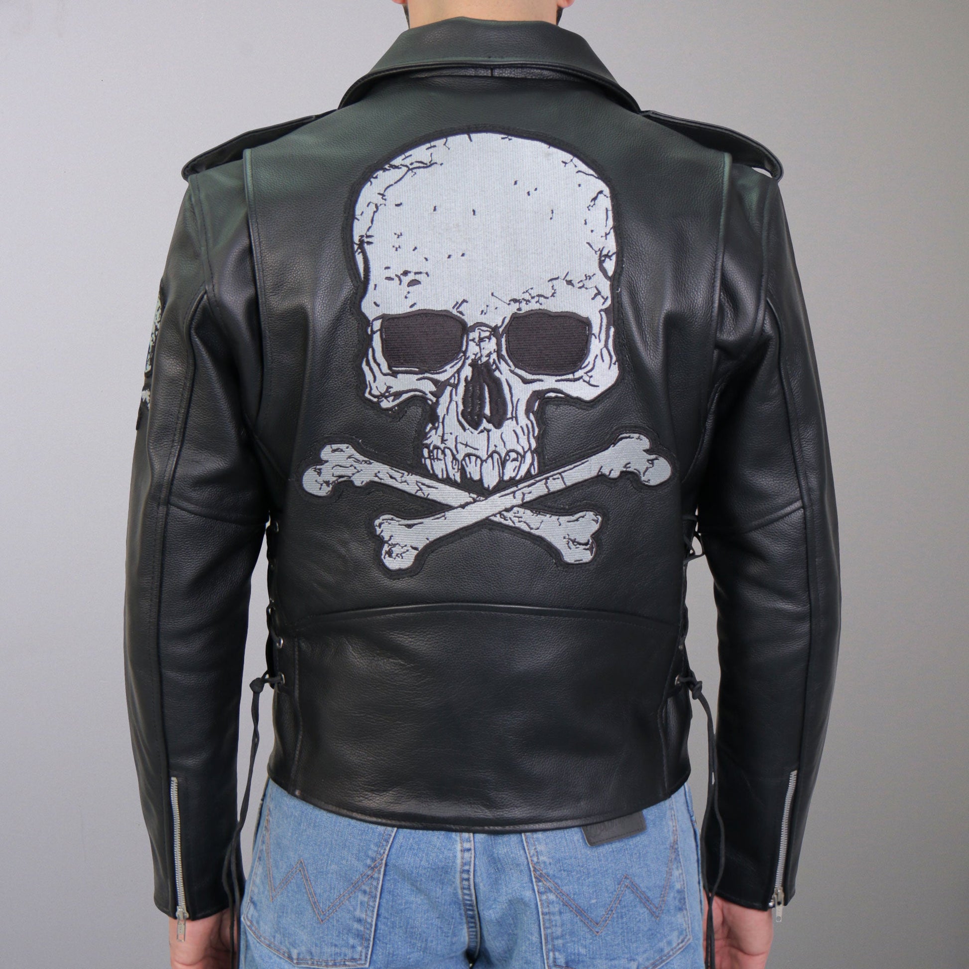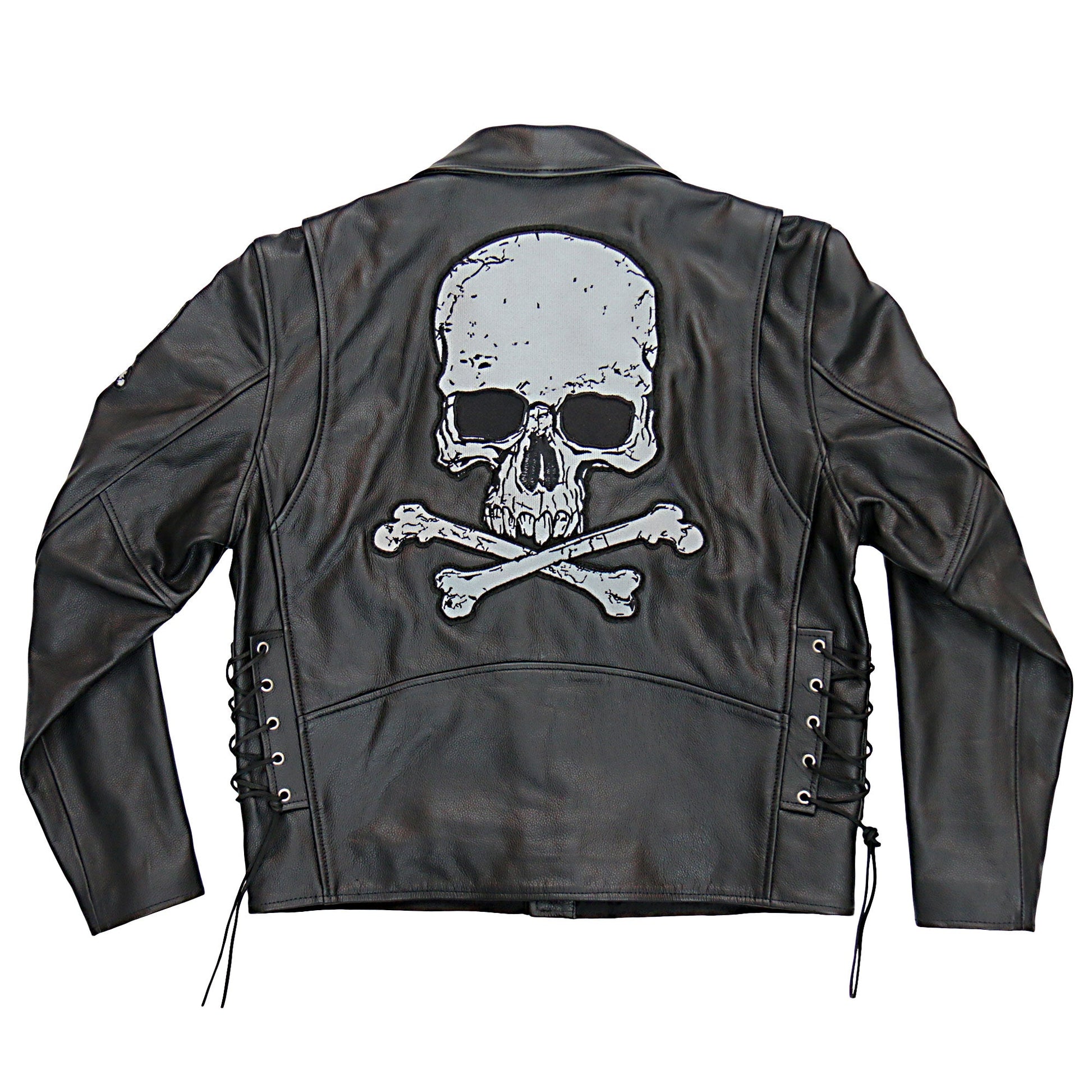 Hot Leathers JKM2001 Men’s Black ‘Skull And Crossbones' Motorcycle Leather Biker Jacket