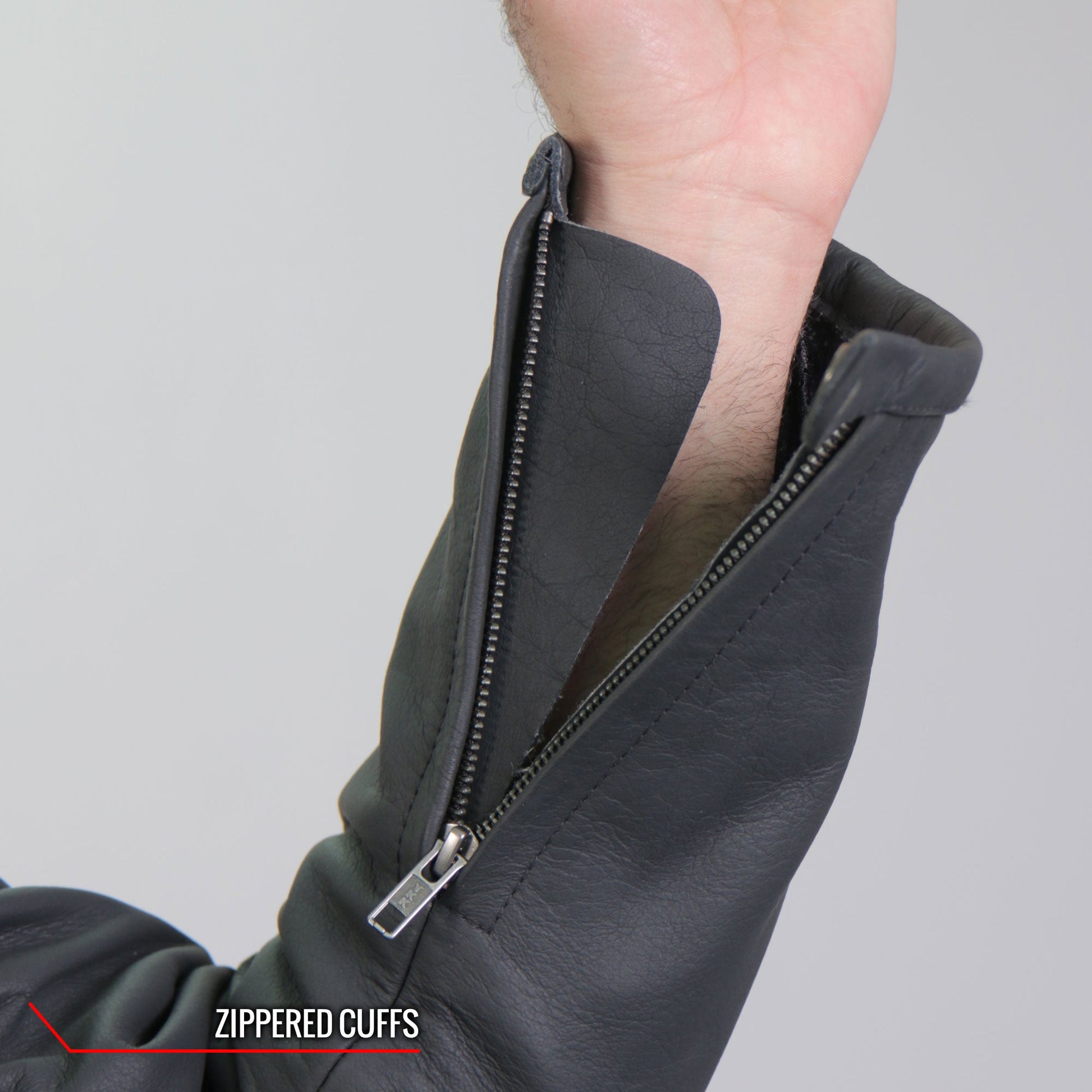 Hot Leathers JKM2002 Men’s Black Biker ‘Reflective Skull' Printed Leather Motorcycle Jacket with Concealed Carry Pockets