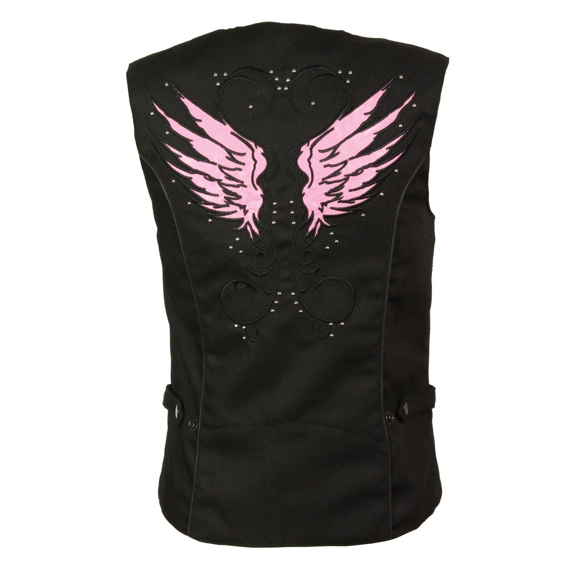 Milwaukee Leather SH1955 Ladies Black and Pink Textile Snap Front Vest with Wing Embroidery
